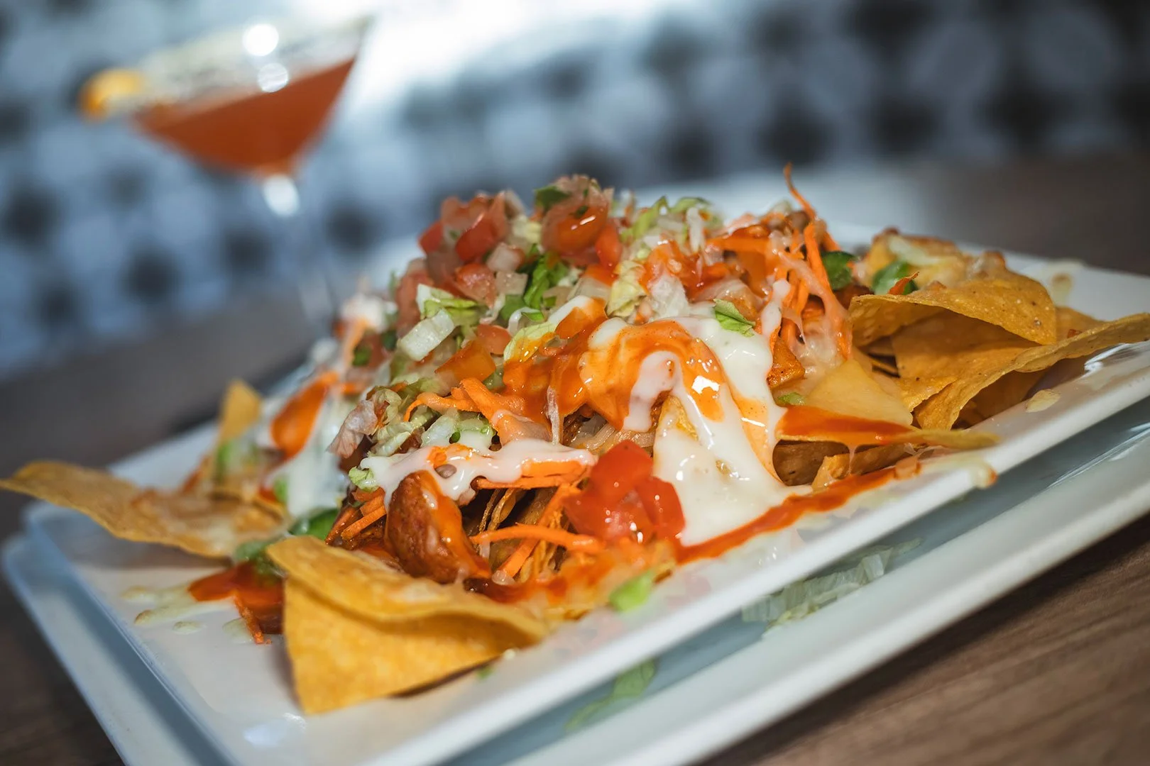 roasted chicken, peppers, onions, shaved celery & carrot, jack cheese, hot sauce, lettuce, pico, blue cheese dressing drizzle